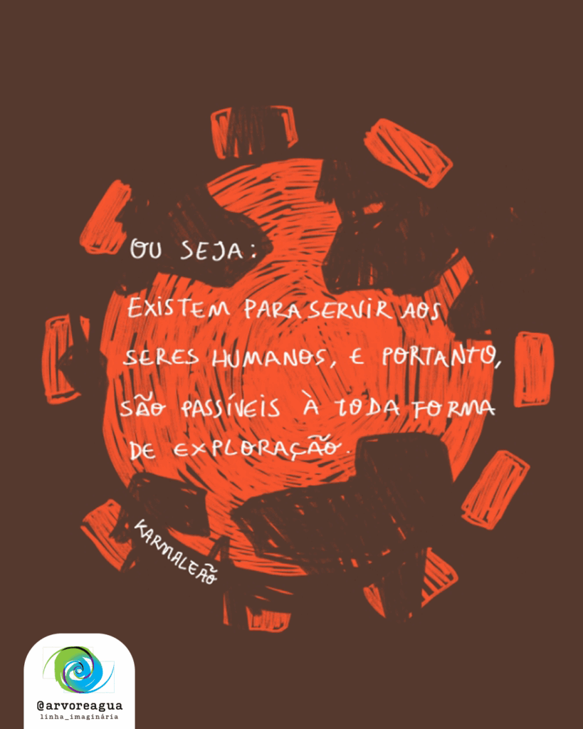 Do outro lado, longe desse conhecimento ancestral, fomos formados em um sistema que separa humanos da natureza e transforma tudo em mercadoria. Um sistema que nos treina a ver a terra como recurso e não como parente. Emburrecidos pela lógica do dinheiro, rompemos o elo que nos mantém vivos.