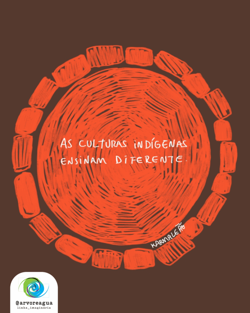 Os povos indígenas aprendem desde cedo que os seres humanos coexistem com a natureza, que a vida só é possível quando se respeita aquilo que sustenta a existência. Nas aldeias, a floresta é mestra. Cada criança cresce sabendo que todas as espécies e entidades compartilham o mesmo tempo e espaço. É o coletivo que ensina.