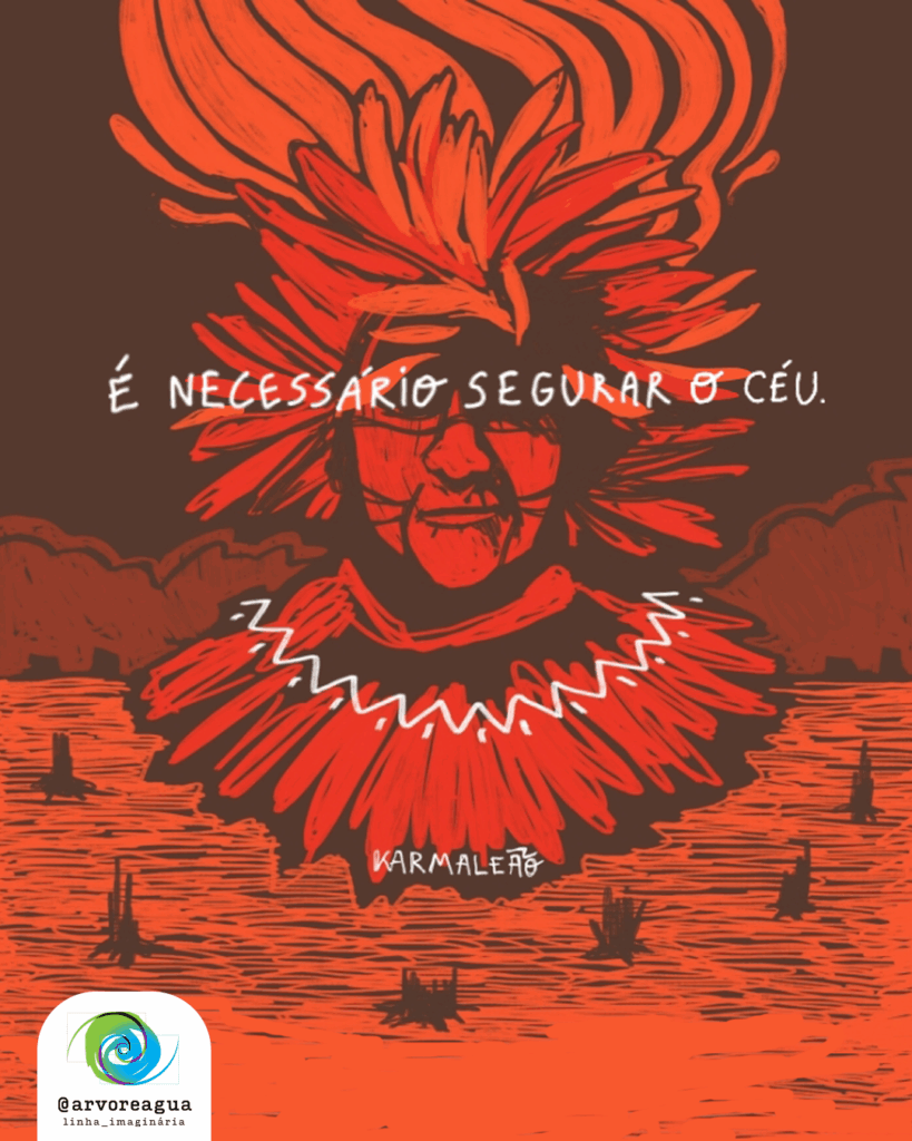 Kopenawa sabe que é a floresta polidiversa que atrai a chuva, que só há água onde há floresta saudável. Quando a terra fica nua, a fertilidade foge para longe. Por isso alerta: “Não as cortem. Ela não está ali por acaso. É ela que nos faz mexer.” Enquanto a floresta mantém a vida sobre a terra, são os xamãs, com a força dos xapiri, que seguram o céu e afastam o espírito da fome.